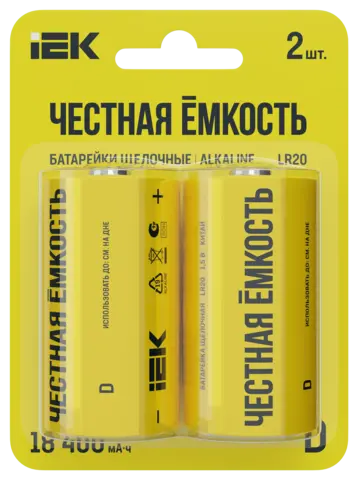 Батарейка щелоч. Alkaline LR20/D (2шт/блистер) IEK ABT-LR20-OP-L02
