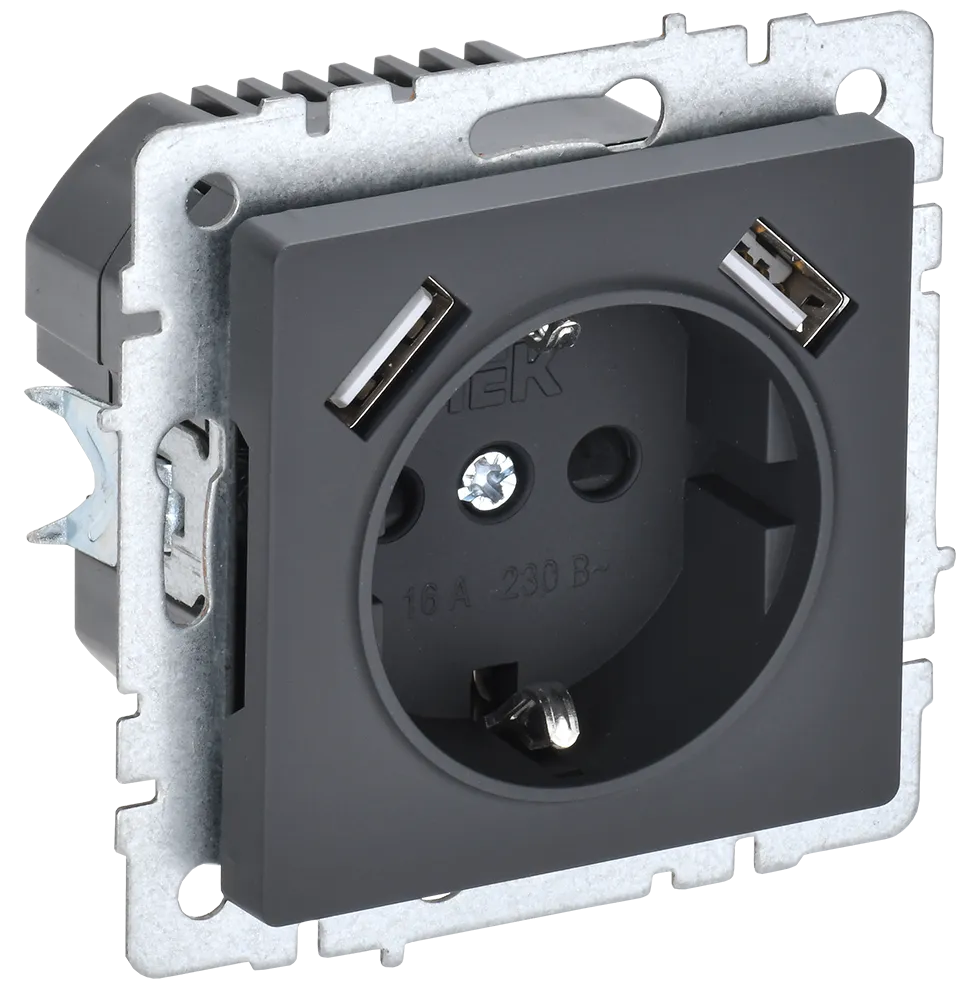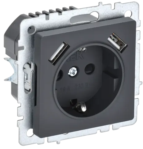 BRITE Роз. с з/к/ш 16А с USB A+A 2,1А РЮш10-1-БрГ граф. IEK