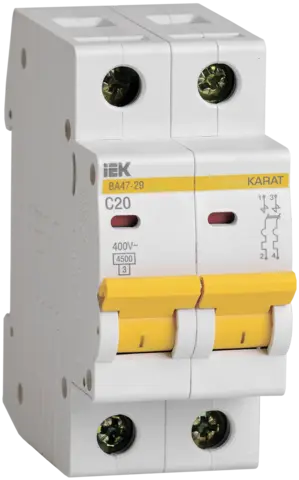 KARAT Авт. выкл. ВА47-29 2P C 20А 4,5кА IEK MVA20-2-020-C