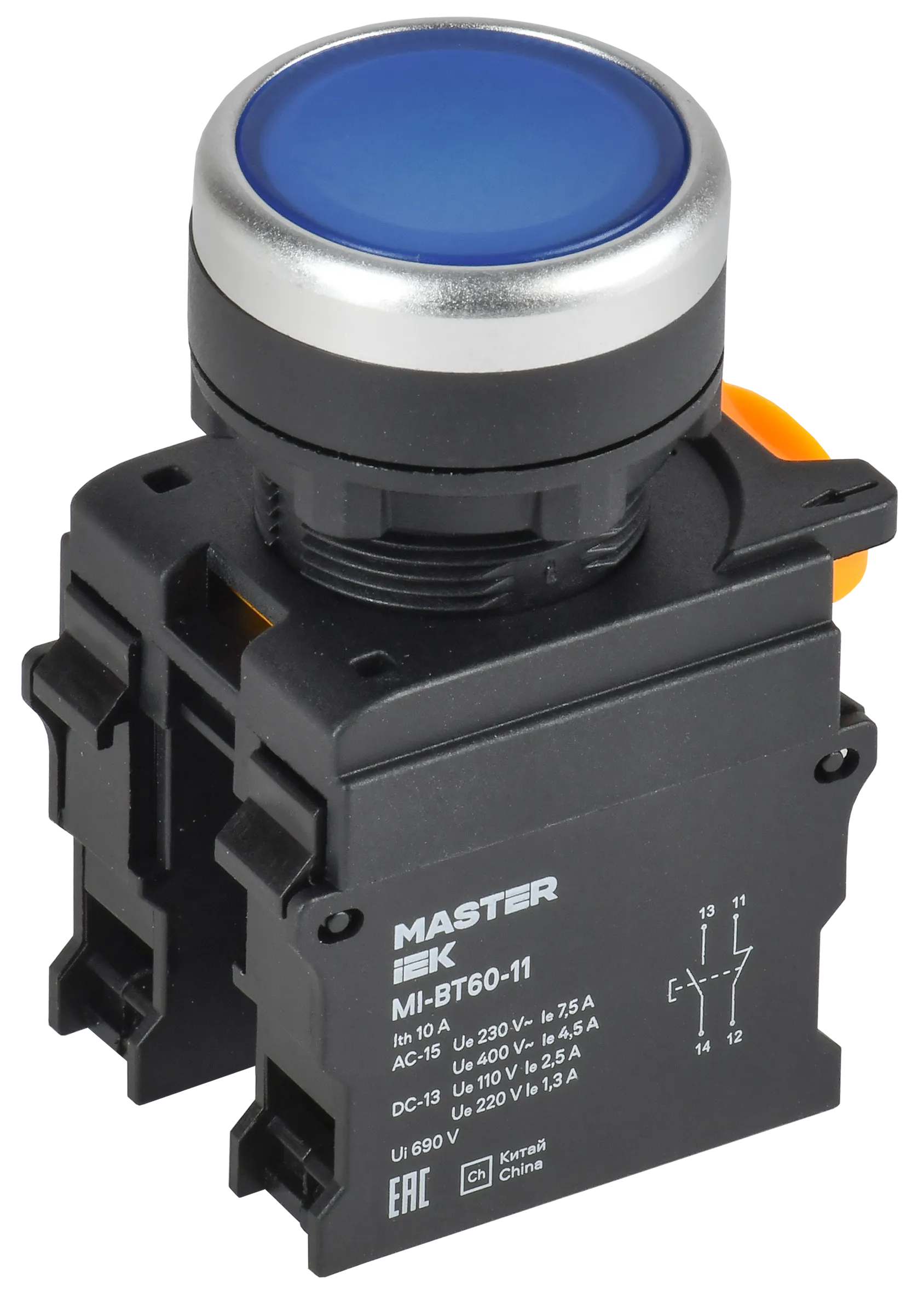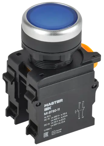 Кнопка d=22мм 1NO+1NC синяя MASTER IEK