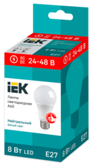 Лампа LED A60 груша 8Вт 24-48В 4000К E27 IEK