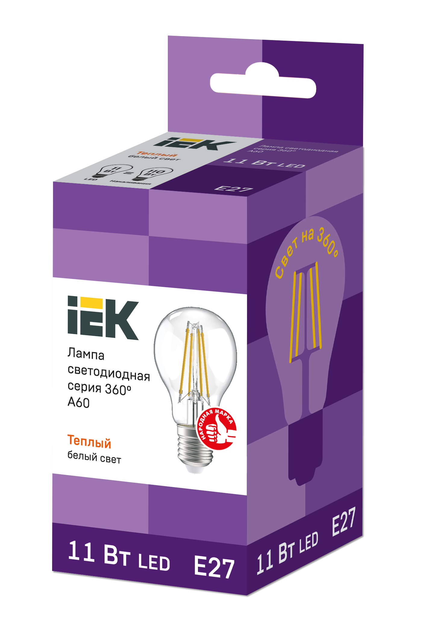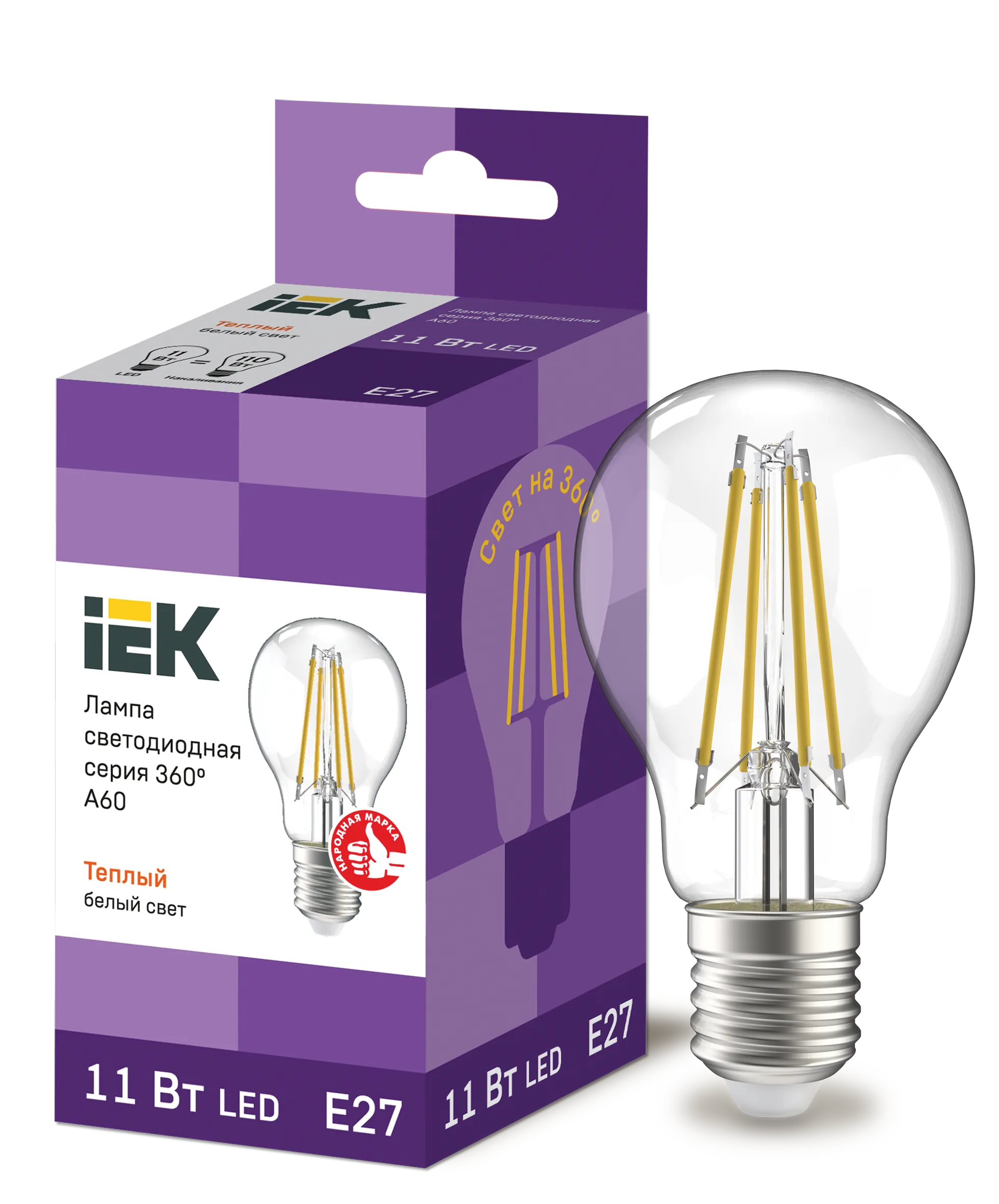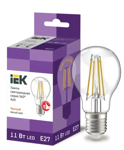 Лампа LED A60 груша проз. 11Вт 230В 3000К E27 серия 360° IEK