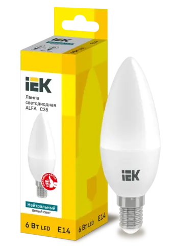 Лампа LED ALFA C35 свеча 6Вт 230В 4000К E14 IEK LLA-C35-6-230-40-E14