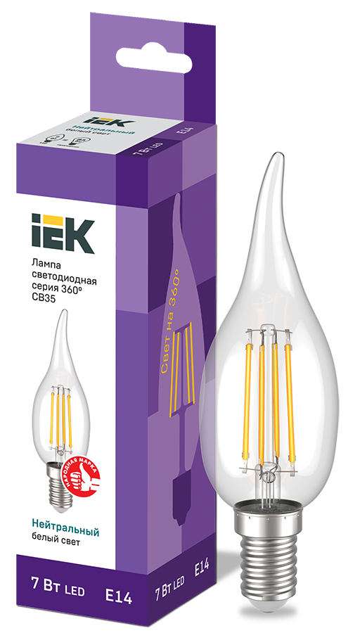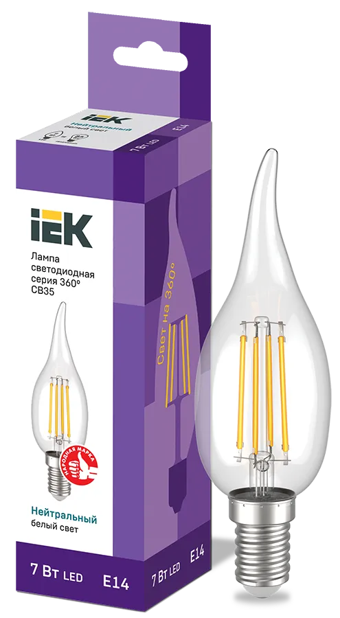 Лампа LED CВ35 св.н/ветру 7Вт 230В 4000К E14 серия 360° IEK