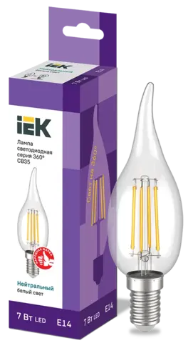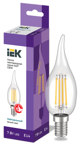Лампа LED CВ35 св.н/ветру 7Вт 230В 4000К E14 серия 360° IEK LLF-CB35-7-230-40-E14-CL