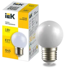 Лампа LED декор. G45 шар 1Вт 230В холодный белый E27 IEK LLE-G45-1-230-W-E27