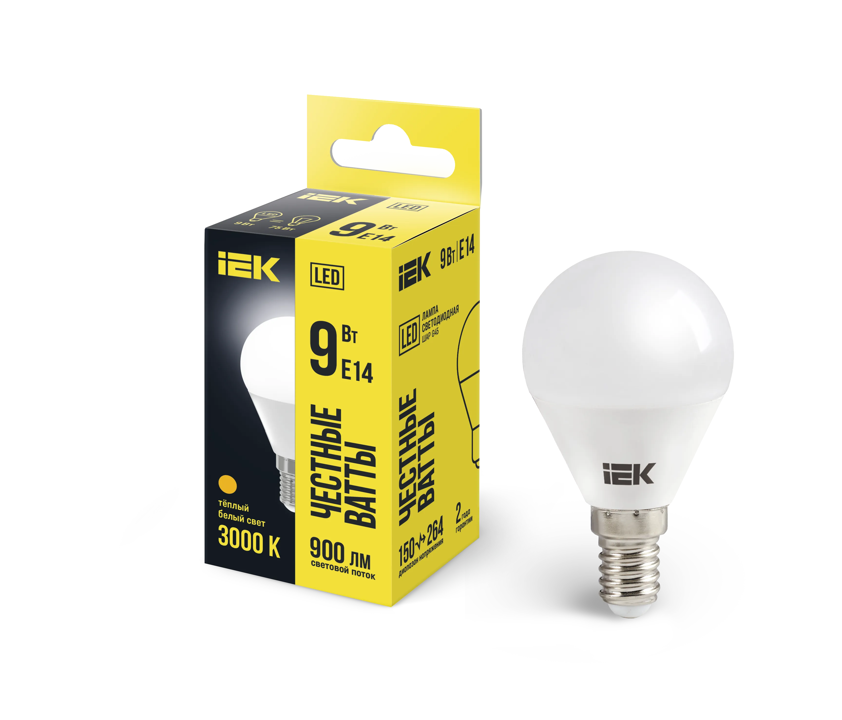 Лампа LED G45 шар 9Вт 230В 3000К E14 IEK