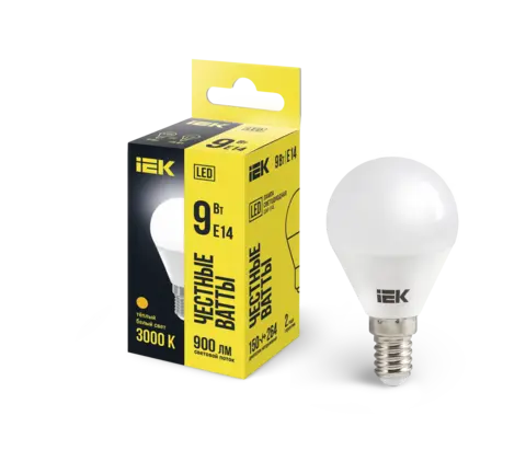Лампа LED G45 шар 9Вт 230В 3000К E14 IEK LLE-G45-9-230-30-E14
