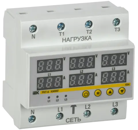 Реле напряжения и тока РНТ-д трехфазное 90мм 63А IEK