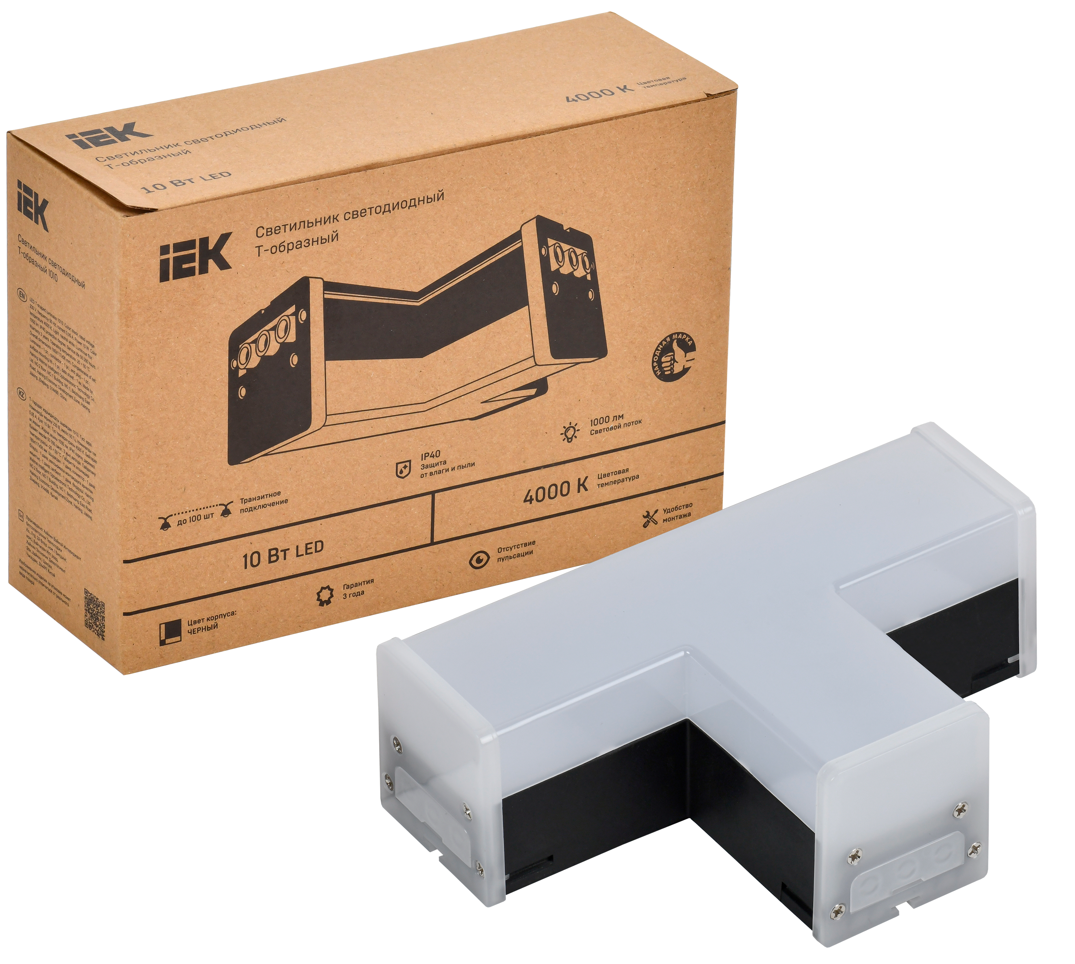 Светильник LED T-образн. 1010 10Вт 4000К 117х180мм чер. IEK