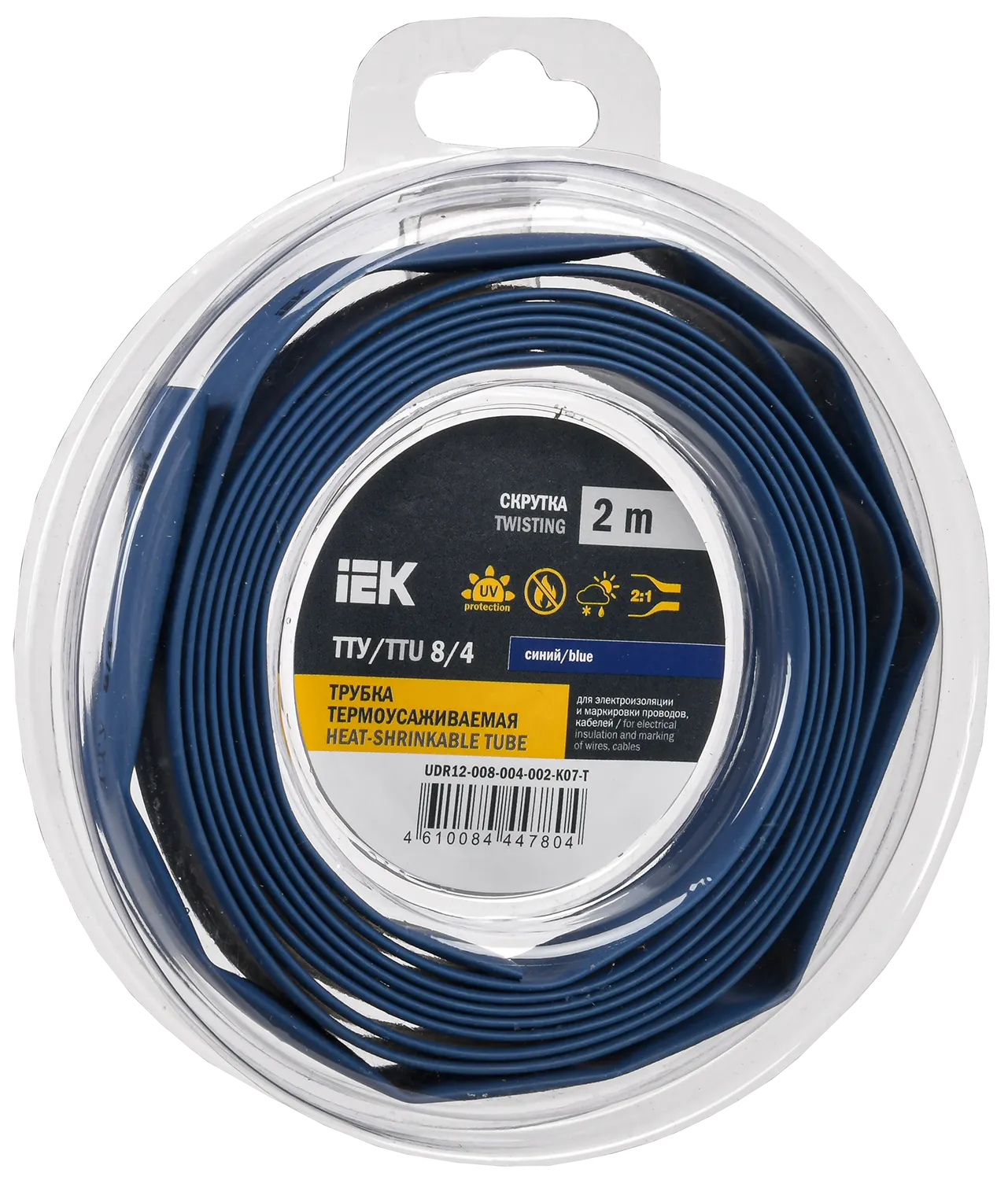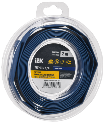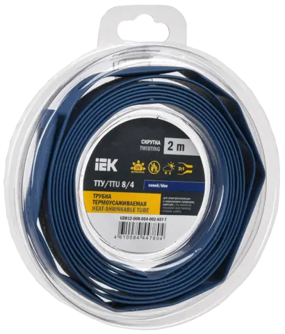 Трубка термоусадочная ТТУ нг-LS 8/4 синяя (2м/упак) IEK UDR12-008-004-002-K07-T